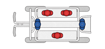 - Geeignet für 5 Kinder – 2 Kinder in den Kindersitzen und 3 Kinder auf den Sitzbänken (Siehe Grafik)