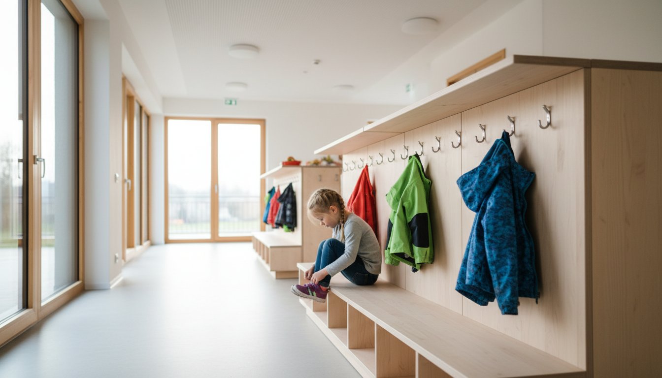 Ein Lachen, das durch den Garten schallt, kleine Hände, die mutig nach dem nächsten Griff greifen, und Augen, die vor Abenteuerlust leuchten – das… - Kindergarderobe mit Sitzbank: Mehr als nur Ordnung im Kita-Flur