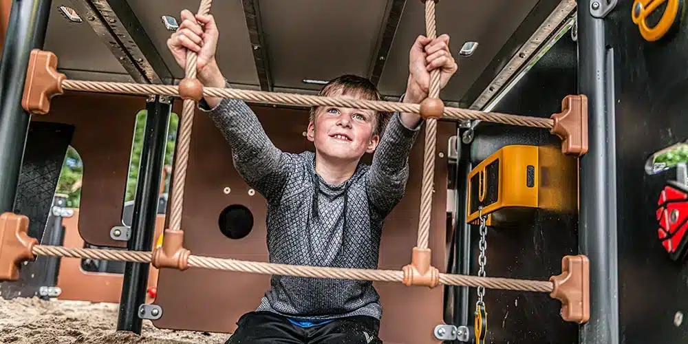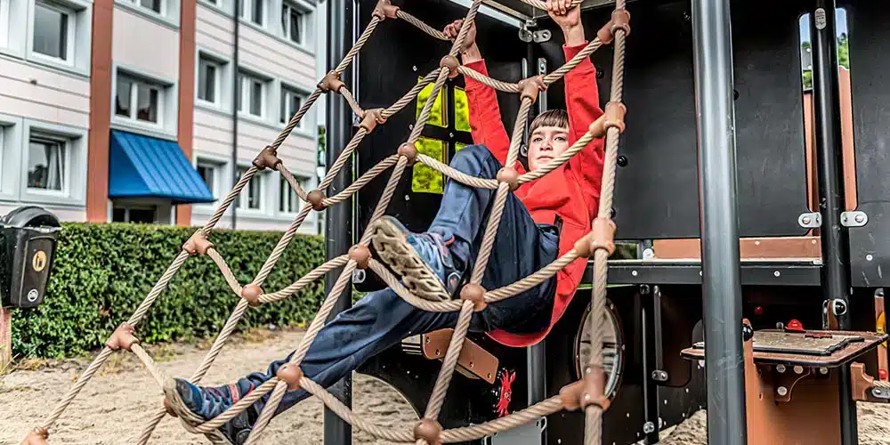 - Bewegungsfördernde Aktivitäten: Elemente wie Kletterseile, Leitern und Balancebalken fördern Koordination und Motorik.