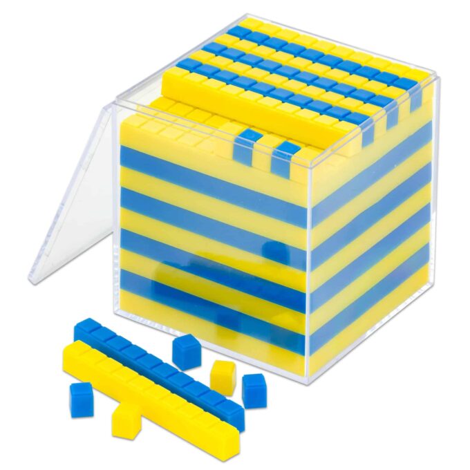 Der 1 dm³-Würfel hat ein Fassungsvermögen von 1 Liter und ist aus transparentem Kunststoff gefertigt, sodass die Kinder alle Teile gut sehen und anfassen können. Im Lieferumfang enthalten sind: