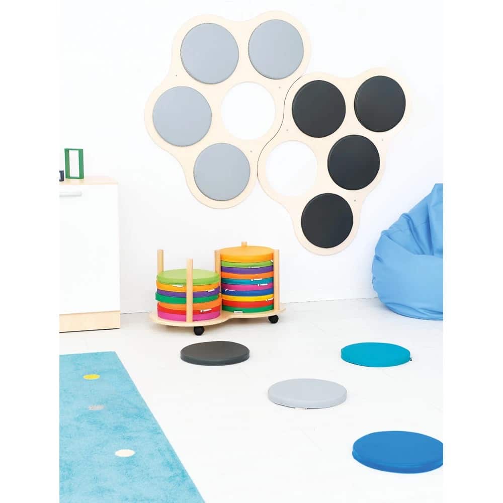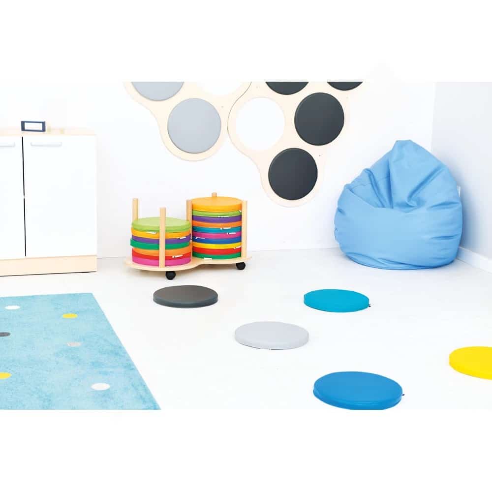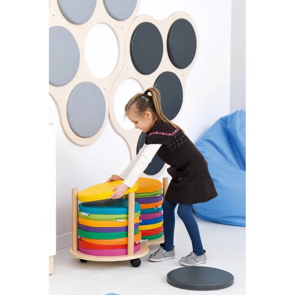 Das Regenbogenkissen, rund bietet eine ideale Kombination aus Komfort, Funktionalität und farbenfroher Optik. Die vielseitigen Kissen sind einfach zu reinigen, langlebig und mit ihrer harmonischen Farbgestaltung echte Highlights in jeder Umgebung. Ob in Bildungseinrichtungen, Zuhause oder bei kreativen Projekten – das Set schafft eine einladende, flexible und aufgeräumte Atmosphäre. Dank des separat erhältlichen Ständers können die Kissen zudem ordentlich verstaut werden. Verleihen Sie Ihrem Raum mit diesem praktischen und attraktiven Set einen Hauch mehr Ordnung und Fröhlichkeit.