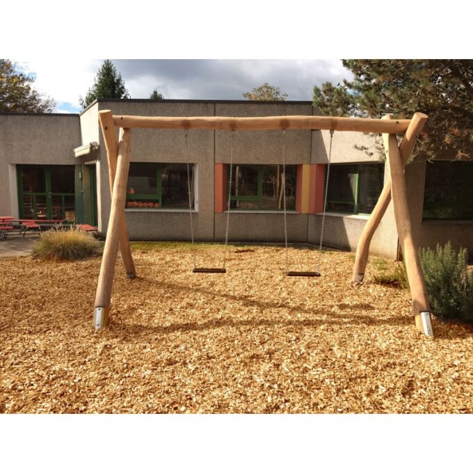 2-Platz Schaukelgestell mit Sitzen und Stahlankern aus Robinien-Holz