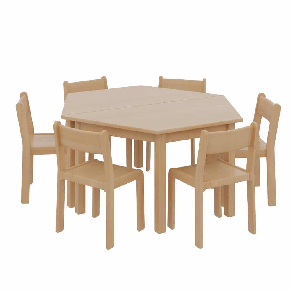 2 Trapeztische mit 6 TIM-Stühlen für Kindergarten und Krippe