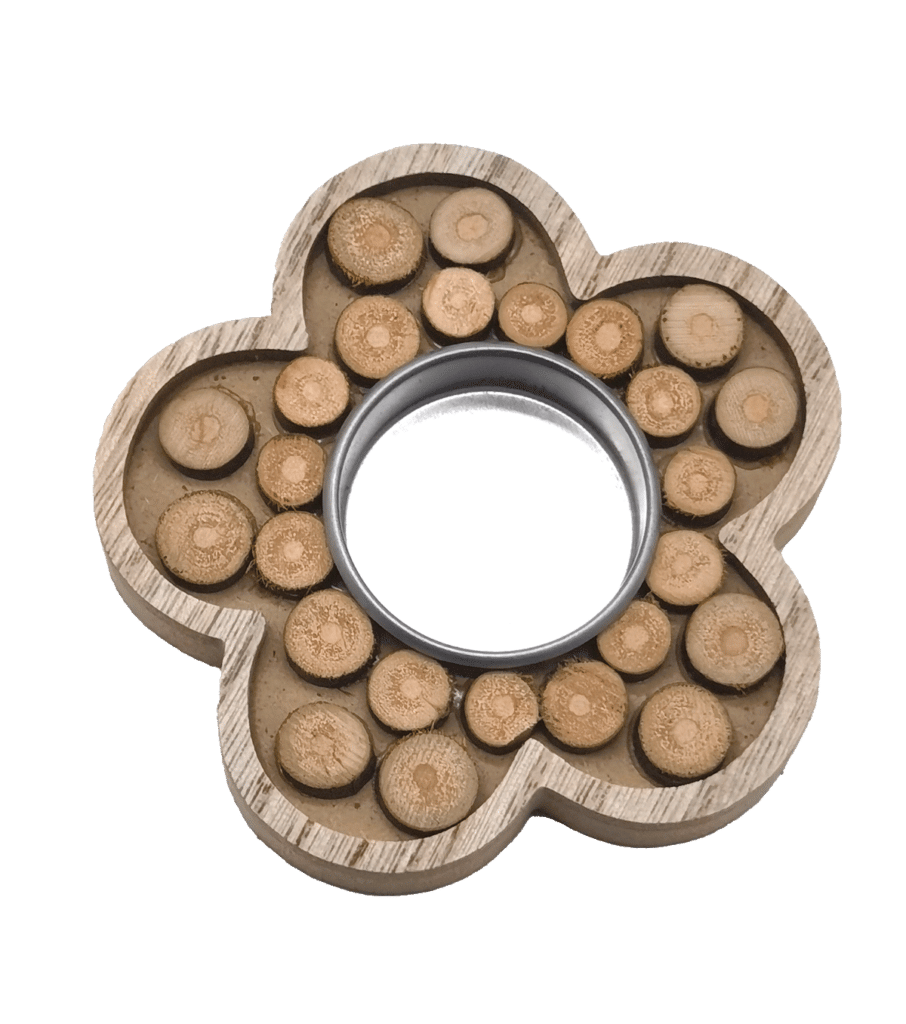 Der Teelichthalter in Blumenform, mit einer Größe von 90 × 90 × 17 mm, kommt in naturfarbenem Finish, das die perfekte Leinwand für kreative Ideen bietet. Die Kinder können die Blume mit Stiften, Farben, Glitzer und anderen Bastelmaterialien nach Herzenslust gestalten. Ganz gleich, ob bunt und fröhlich oder in zarten Pastelltönen – der Teelichthalter wird zum individuellen Ausdruck ihrer Kreativität.