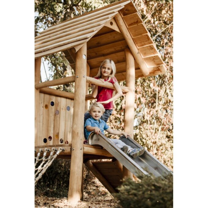 4-Eck-Spielturm mit Anbauten aus Robinien-Holz