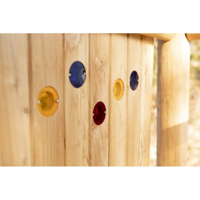 Kompaktes „Leucht‐Türmchen“: Unser U3‐Zwergenhausen- Spielturm ist das Highlight auf jedem U3‐Spielplatz. Besonders die bunten Gucklöcher im Geländerelement haben magische Anziehungskraft. Sie motivieren Kinder, den Turm über das Kletternetz oder die Aufstiegsrampe zu erobern. Oben angekommen, genießen die einen den Ausblick, die anderen die Rutschpartie nach unten.