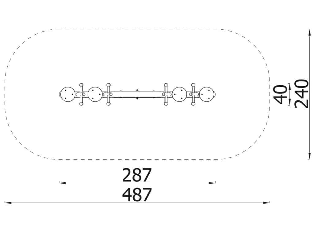 - Verankerung: Wippgerät 60 cm unterhalb der Bodenfläche verankert. Für mehr Stabilität ist ein Betonfundament erforderlich.