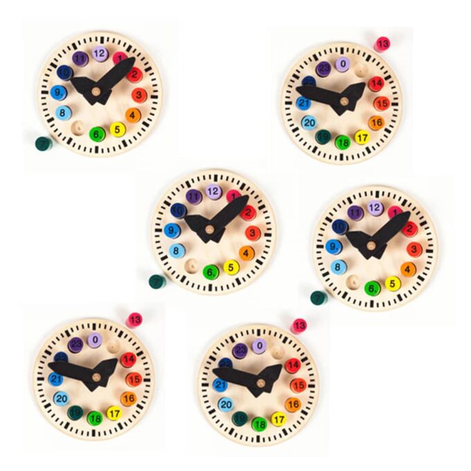 Dieses Set von Kleinen Lernuhren ist das perfekte Lernmittel, um Kindern in Kindergärten, Vorschulen und Grundschulen auf spielerische Weise den Umgang mit Ziffern und das Ablesen der Uhrzeit näherzubringen.