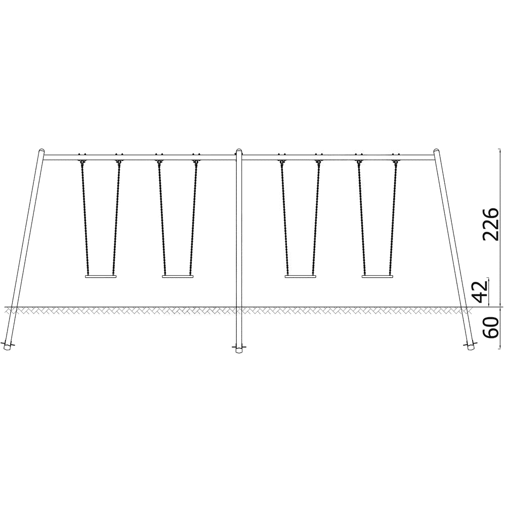 Die A4K Lime 4er-Schaukel wird aus erstklassigen Materialien gefertigt, die sowohl für Sicherheit als auch für Langlebigkeit stehen. Die Pfosten (Ø 114 mm) und Konstruktionselemente sind aus verzinktem Stahlrohr gefertigt und dank der Pulverbeschichtung mit Polyesterfarbe witterungsbeständig. Das garantiert eine langfristige Nutzung, selbst bei wechselhaften Wetterbedingungen.