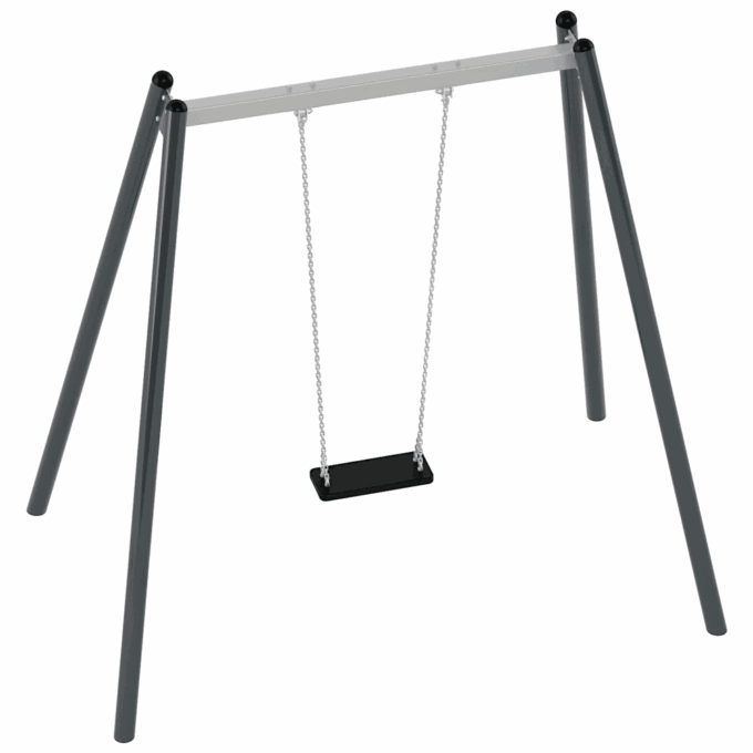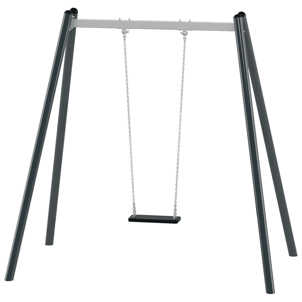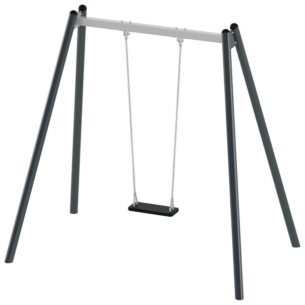 Die A4K Lime Einfachschaukel ist aus verzinktem Stahlrohr (Ø 114 mm) gefertigt und besitzt eine Pulverbeschichtung mit Polyesterfarbe, die sie wetterbeständig macht. Diese robuste Bauweise sorgt dafür, dass das Spielgerät auch bei rauen Wetterbedingungen standhält und viele Jahre Freude bereitet.
