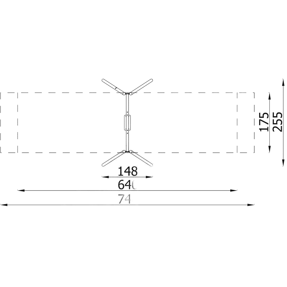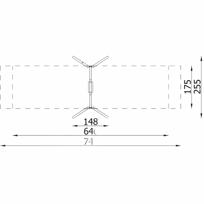 - Sicherheitsbereich: 175 x 740 cm (Fläche: 13 m²)