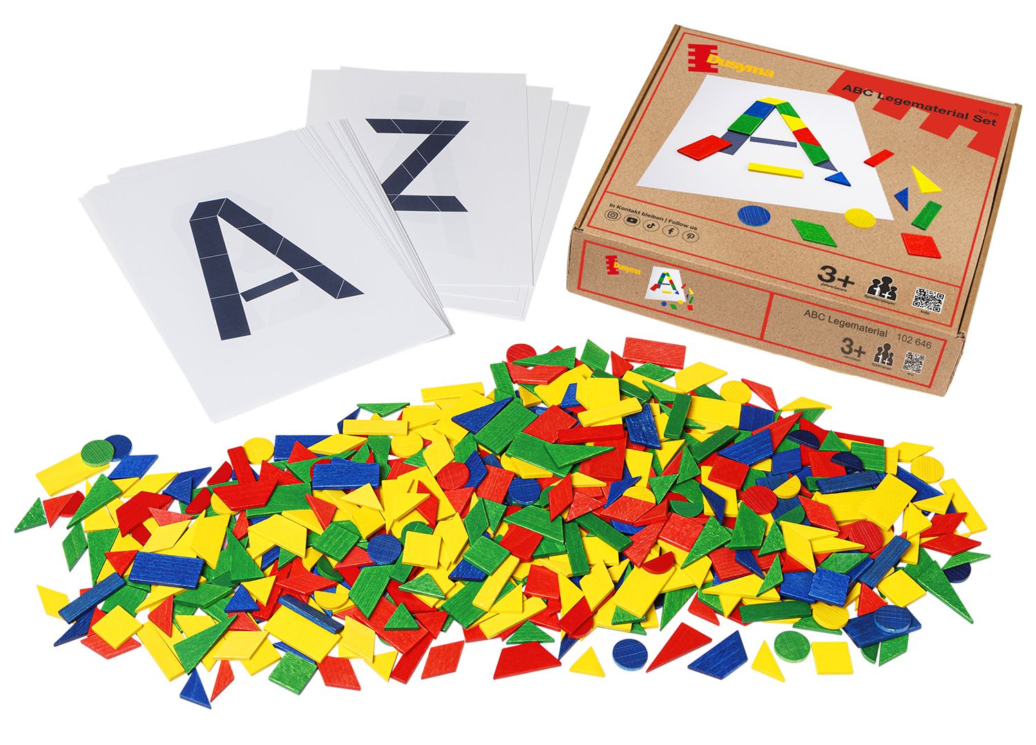 Das ABC Legematerial Set von Dusyma ist das perfekte Lehrmittel für Kinder ab 3 Jahren, um die faszinierende Welt der Buchstaben zu erkunden! Mit klaren Anleitungen, die auf 29 Vorlagekarten (21 x 29,7 cm, A-Z sowie Ä, Ö und Ü) abgebildet sind, können Kinder Buchstaben spielerisch nachlegen und damit ihr Wissen über die Schrift und das Alphabet erweitern.