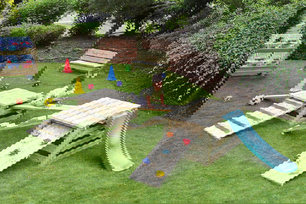 Das offene Design des Klettersets ist seine größte Stärke. Es gibt nicht nur einen richtigen Aufbau.- Anpassungsfähig: Die Elemente können je nach Alter, Fähigkeit und Mut der Kinder immer wieder neu angeordnet werden. So schaffen Sie niedrigschwellige Angebote für die Kleinsten oder anspruchsvolle Parcours für die größeren Entdecker.