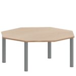Der Achtecktisch ZALOTTI mit Schichtstoff-Belag und Stahlrohrbeinen revolutioniert moderne Arbeits- und Lernumgebungen durch seine einzigartige Verbindung von harmonischer Achteck-Geometrie und industrieller Präzision. Diese außergewöhnliche zargenlose Tischkonstruktion mit unzerstörbarem 0,8 mm HPL-Schichtstoffbelag und robusten, pulverbeschichteten Stahlrohrbeinen schafft die ideale Grundlage für kreative Gruppenarbeit und kommunikative Zusammenarbeit. Die besondere Achteckform mit acht gleichlangen 50 cm Kanten ermöglicht völlig neue Raumarrangements und demokratische Sitzordnungen bei gleichzeitig komfortablem Arbeitsplatz für bis zu acht Personen. Die zargenlose Bauweise bietet ungehinderte Beinfreiheit für alle Nutzer – auch für Rollstuhlfahrer. Mit acht verfügbaren Höhen von 25 bis 76 cm wächst dieser „Made in Germany“ Qualitätstisch flexibel mit den Anforderungen mit und schafft durch seine industrielle Ästhetik eine professionelle, moderne Arbeitsatmosphäre für kreatives Lernen, gemeinsame Aktivitäten oder innovative Besprechungsformate.