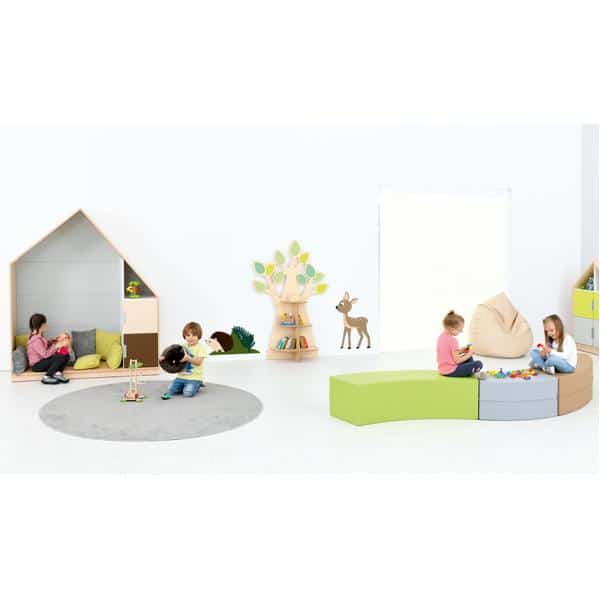Achtelkreis-Sitz Paolo – lang – hellbraun für Kindergärten