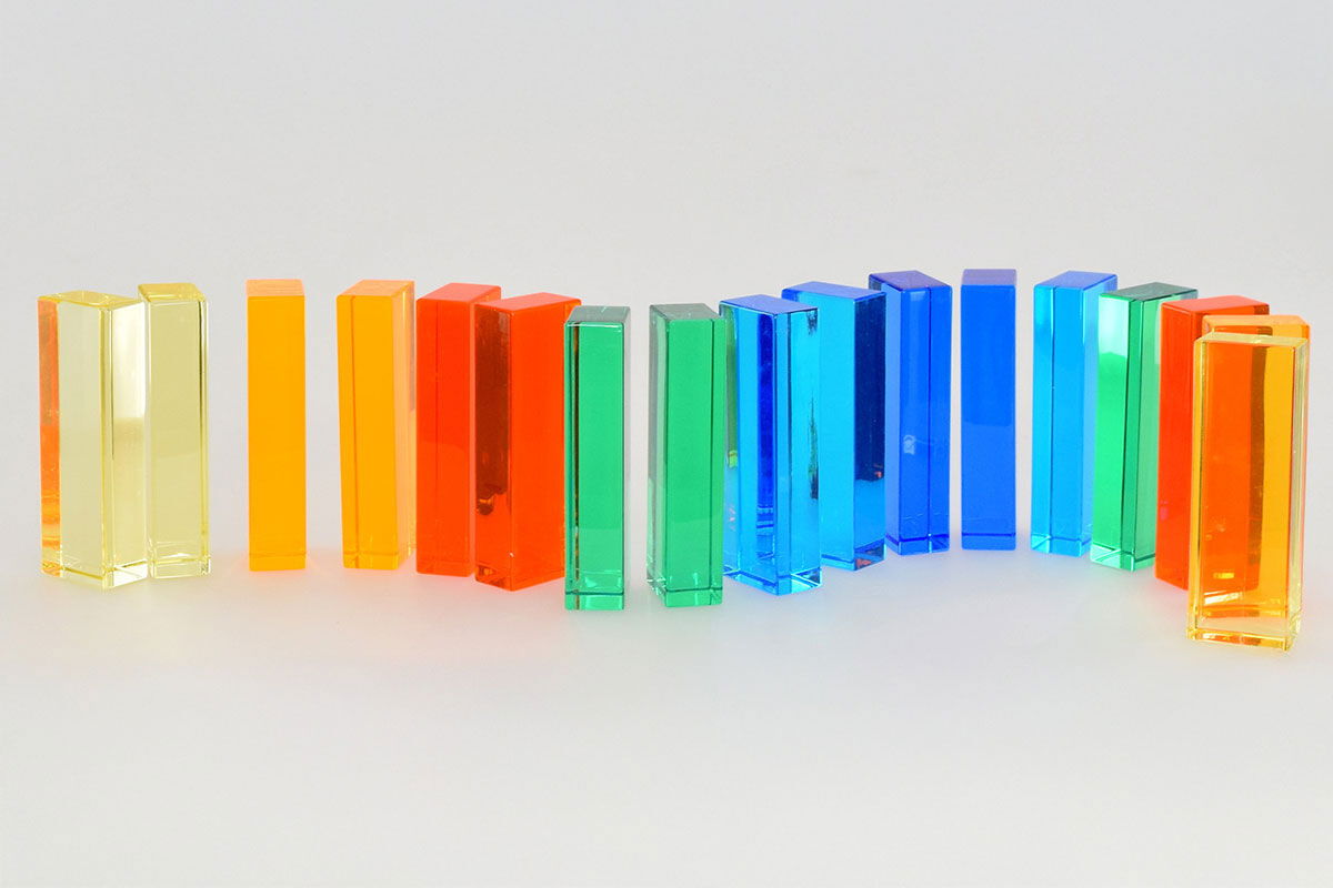 - Visuelle Stimulation: Die lichtdurchlässigen Acrylsteine fangen das Umgebungslicht ein und sorgen für leuchtende Farben. Dies schult das ästhetische Empfinden und macht physikalische Phänomene wie Lichtbrechung und Farbmischung spielerisch erfahrbar.