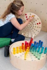 - Förderung der Sinne: Das Set unterstützt nicht nur die visuelle Wahrnehmung, sondern auch die Entwicklung von Feinmotorik und Hand-Auge-Koordination durch das präzise Platzieren und Stapeln der Zylinder.