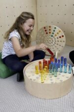 Besonders beeindruckend ist das Farbspiel, das entsteht, wenn Licht – ob vom Lichttisch, Sonnenstrahlen oder einer Lampe – auf die Acrylzylinder trifft. Sie leuchten strahlend und sorgen für faszinierende Licht- und Farbeffekte in jedem Raum. Dabei ergänzt das Set nicht nur bestehende Bausteine und Sortierspiele, sondern fördert gleichzeitig Fantasie, motorische Fähigkeiten und das Verständnis für Farben und Licht.