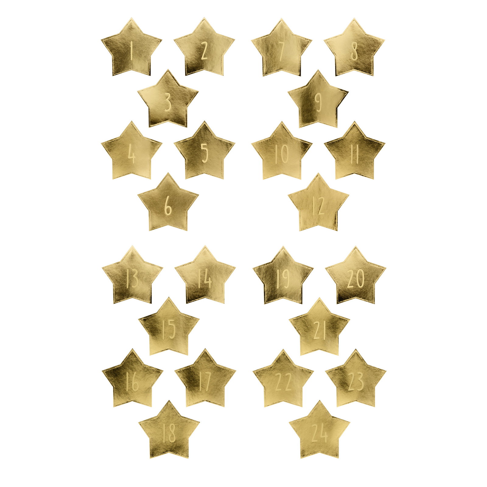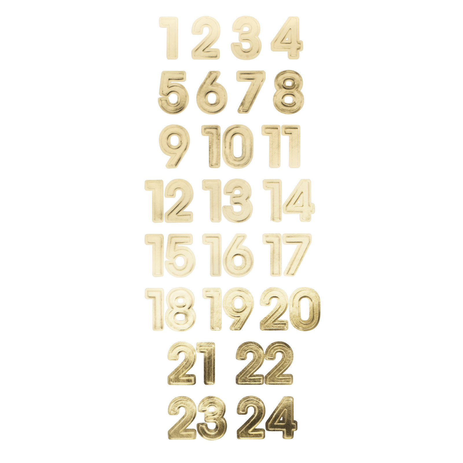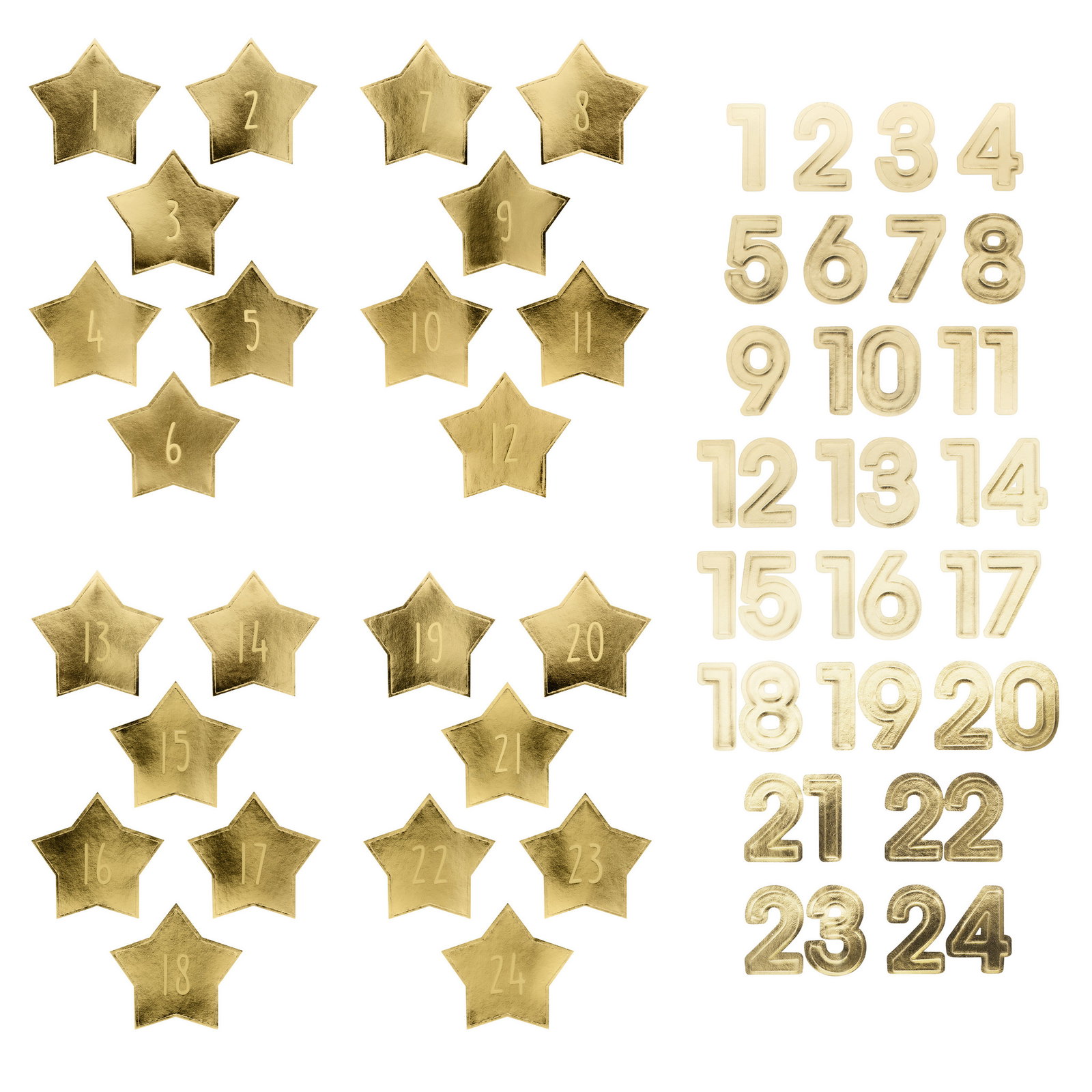 Edle Adventskalendersticker in Gold (Zahlen 1–24). Selbstklebend & festlich. Ideal zum Verzieren von selbstgebastelten Kalendern. Jetzt Vorfreude steigern