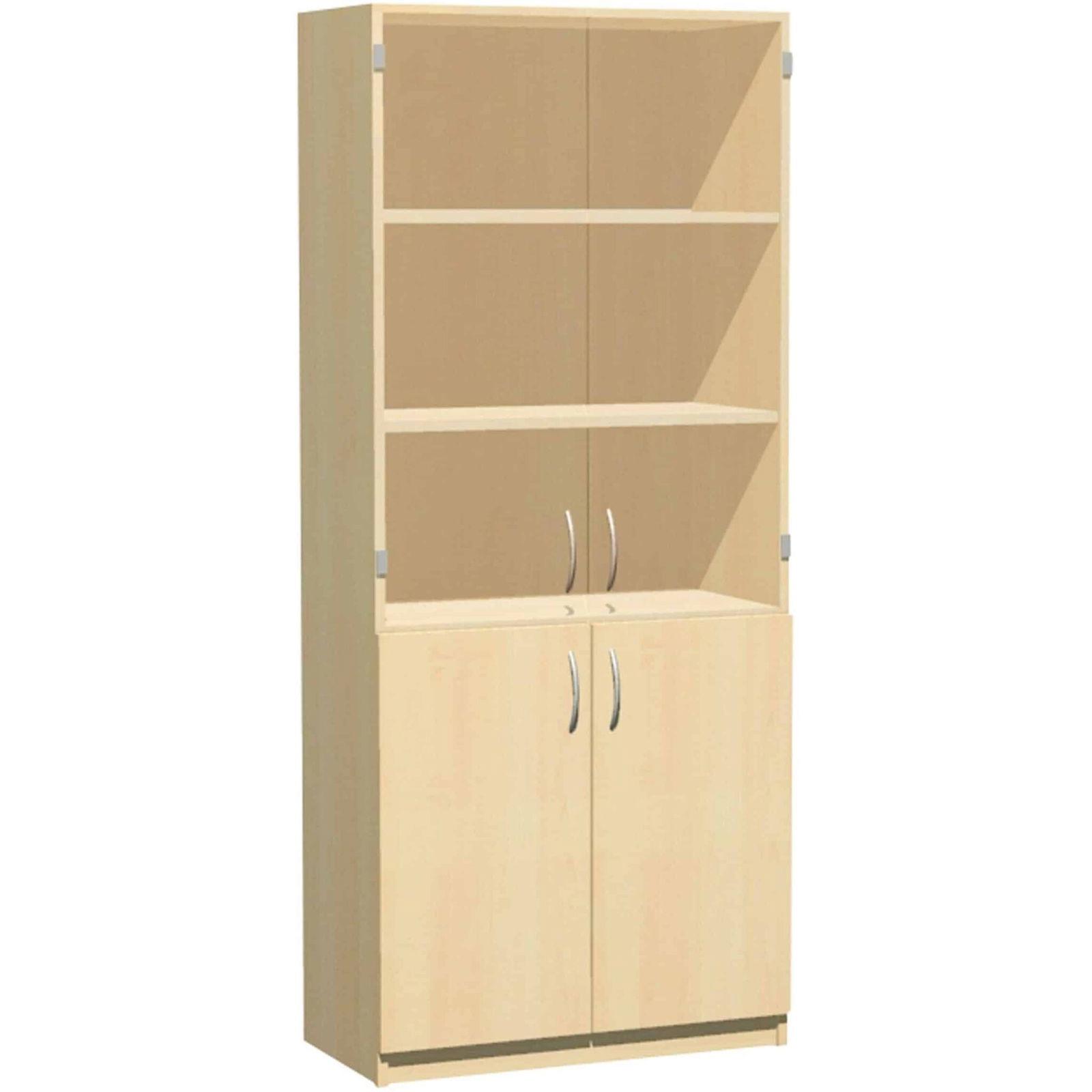 Mit selbstschließenden 110° Scharnieren ausgestattet, sorgt der Schrank für ein sanftes und sicheres Schließen. Die schlichten Bogengriffe in Nickel matt unterstreichen das elegante Design und machen den Aktenschrank zu einem echten Blickfang in jedem Personalraum oder Büro.