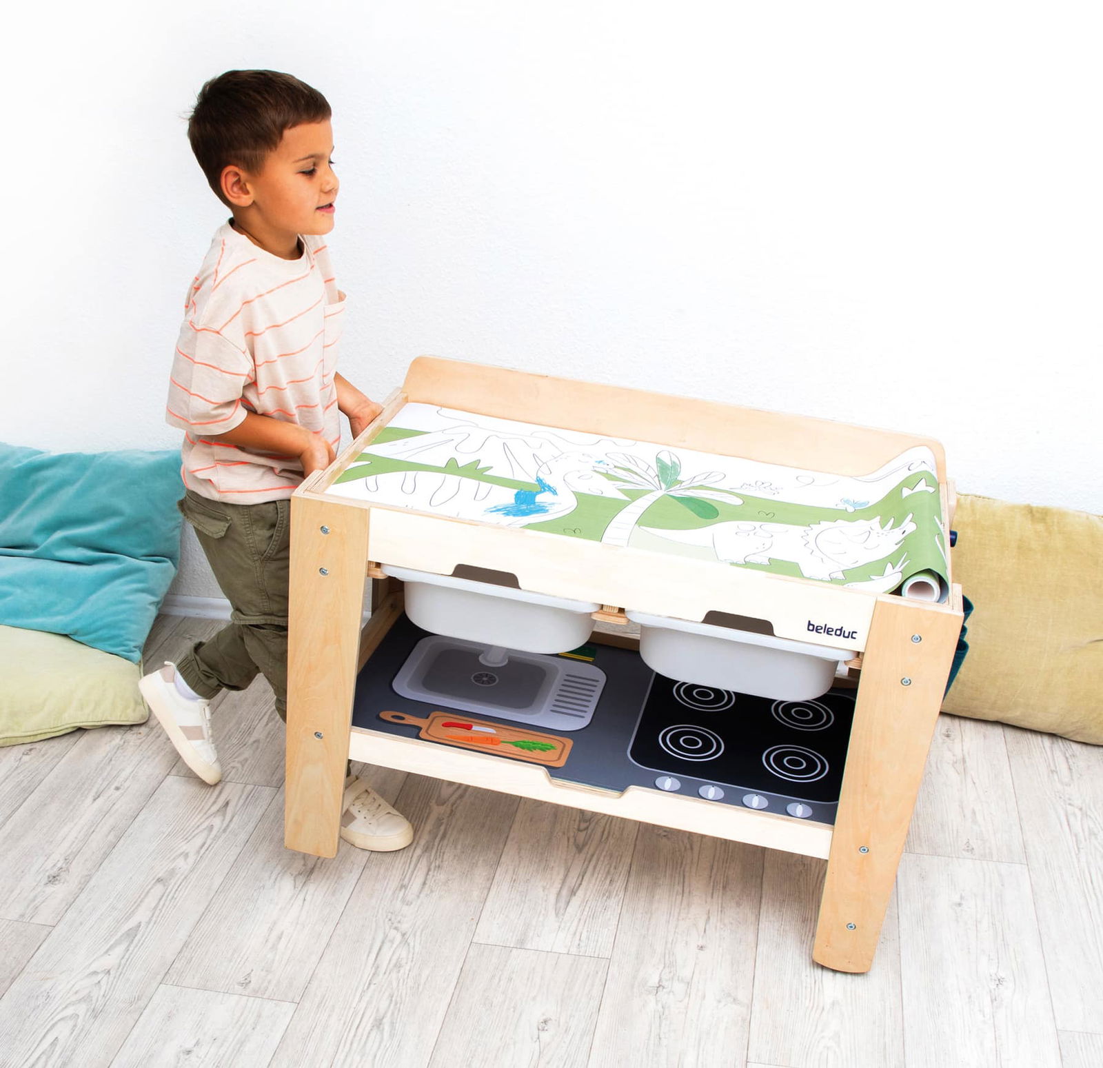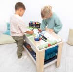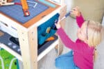Der Aktions-Spieltisch „Freeplay“ wurde entwickelt, um die Bedürfnisse von Kindern und Betreuern gleichermaßen zu erfüllen. Er ist ein durchdachtes Möbelstück, das Fantasie fördert und gleichzeitig den Alltag erleichtert.