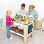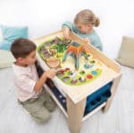 Mehr als nur ein Spieltisch.- Die große Tischplatte kann ohne Matte auch hervorragend zum Malen, Basteln oder für Bauprojekte mit Bausteinen genutzt werden. Er ist ein echter Alleskönner für den Gruppenraum.