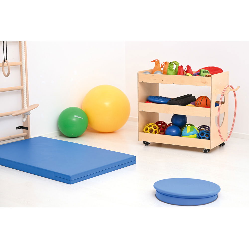 Chaos im Gruppenraum oder unauffindbare Sportgeräte in der Turnhalle? Mit dem Aktiv Mehrzweckwagen gehört langes Suchen der Vergangenheit an. Dieser funktionale und robuste Wagen aus hochwertigem Birke-Sperrholz ist die ideale Lösung, um verschiedenste Materialien – von Bällen und Seilen bis hin zu Bastelutensilien und Bausteinen – übersichtlich und griffbereit zu organisieren.