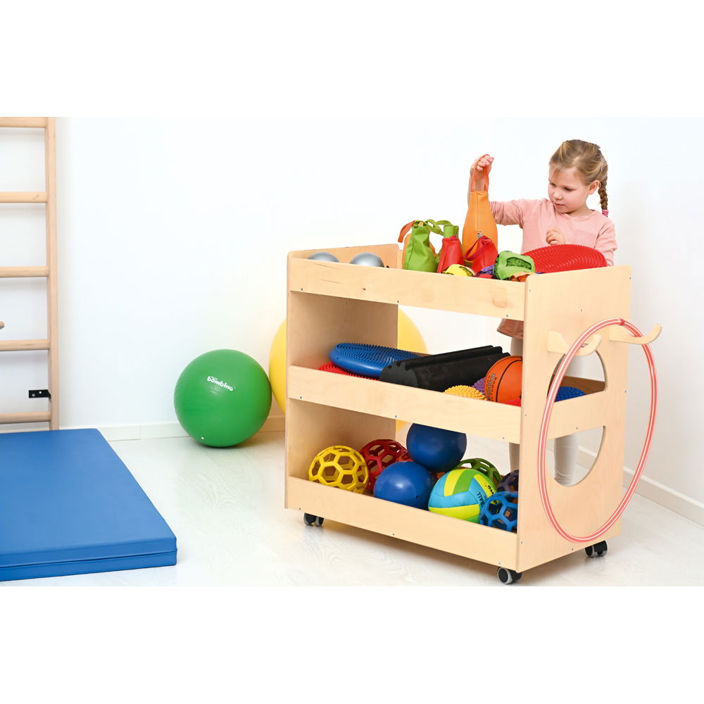 Dieser Wagen ist ein echtes Multitalent. Nutzen Sie ihn als mobilen Sportwagen in der Turnhalle, um Bälle und Kleingeräte zu transportieren. Verwenden Sie ihn als Bastelstation, die alle Farben, Papiere und Werkzeuge bereithält. Oder setzen Sie ihn als Aufräumhilfe im Spielzimmer ein. Seine offenen Ablagen machen ihn für jeden Zweck flexibel nutzbar. - Sichere Aufbewahrung dank hoher Aufkantung