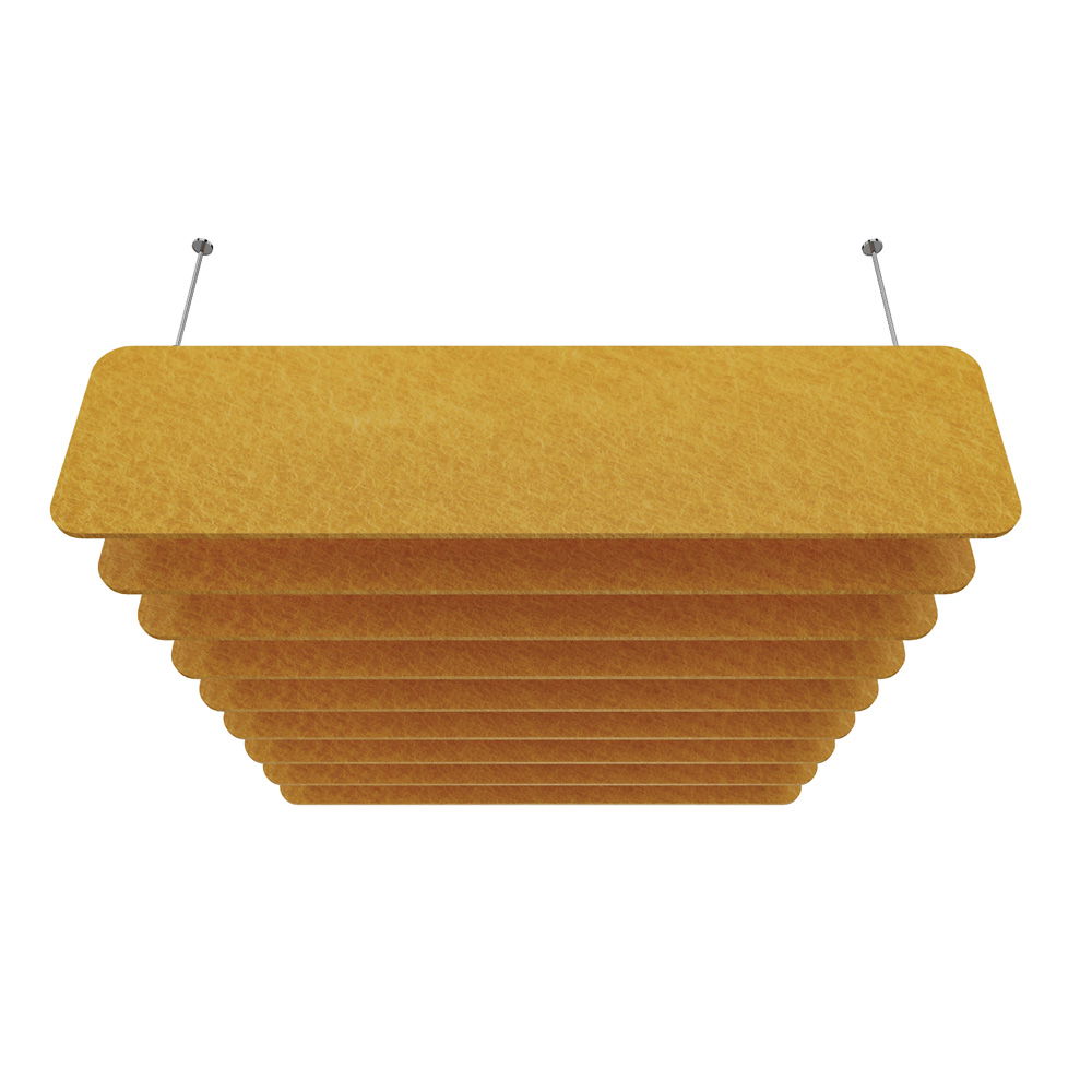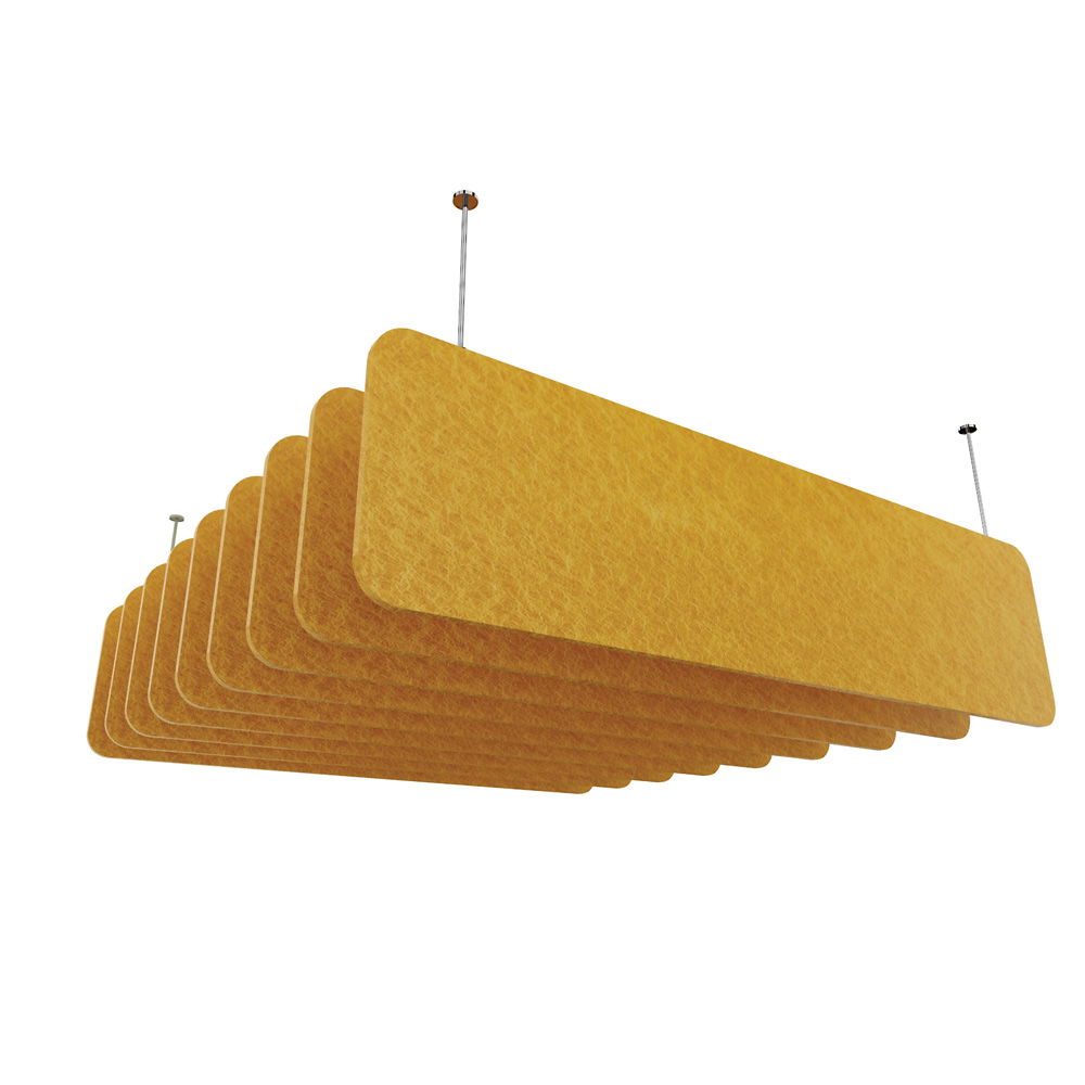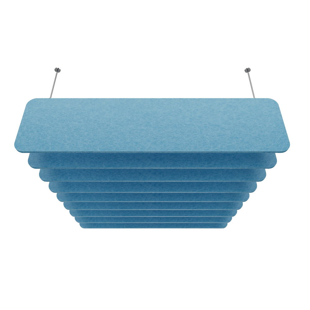 Akustiklösungen müssen nicht langweilig sein. Das Set Sky besteht aus neun eleganten Paneelen, die wie Wolken unter der Decke zu schweben scheinen. Dank einer großen Farbpalette können Sie individuelle Akzente setzen – von dezenten, einfarbigen Arrangements bis hin zu kreativen, mehrfarbigen Mustern, die die Decke in ein gestalterisches Highlight verwandeln. - Höchste Brandschutzstandards