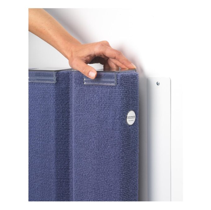 Magnetische Wandstreifen:Alle Teiler haben magnetische Punkte an jedem Ende des Teilers. Der Wall Strip wird an der Zimmerwand montiert und Ihr Sound Spange Quiet Divider wird magnetisch am Wall Strip befestigt. Es wird mit zwei Halterungen geliefert. Schrauben und zwei Dübel sind enthalten.