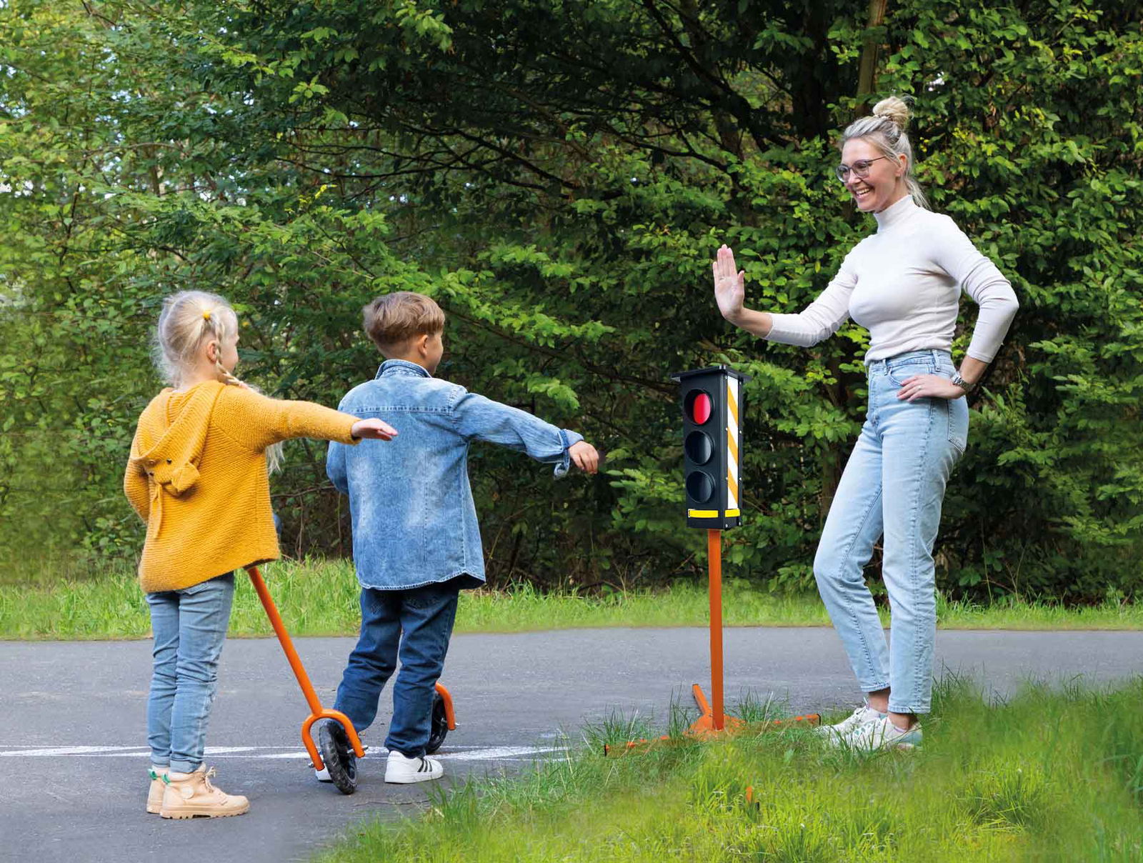 - Gestalten Sie spannende Parcours oder kleine Verkehrswege direkt auf dem Spielplatz oder im Schulhof.