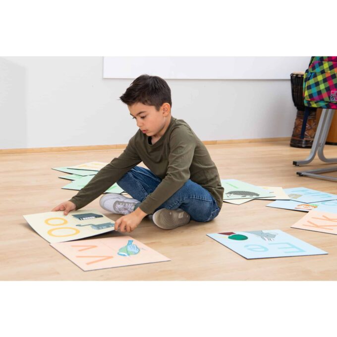 Mit einer Größe von 33 x 33 cm sind die farbenfrohen Anlaut-Bodenfliesen ideal gestaltet, um den Kindern beim Kennenlernen der Buchstaben zu helfen. Jede Fliese ist mit einem Groß- und Kleinbuchstaben sowie einer passenden, simplen Illustration versehen, die zeigt, welches Wort mit dem jeweiligen Buchstaben beginnt. Diese visuelle Unterstützung macht den Lernprozess anschaulich und leicht verständlich.
