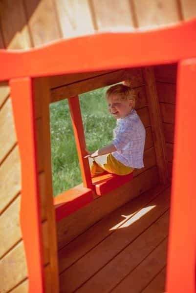 - Langlebig und stabil: Das Häuschen besteht aus Akazie und Lärche sowie langlebigen Materialien wie Edelstahl und HDPE, die auch intensiven Spielbedingungen standhalten.