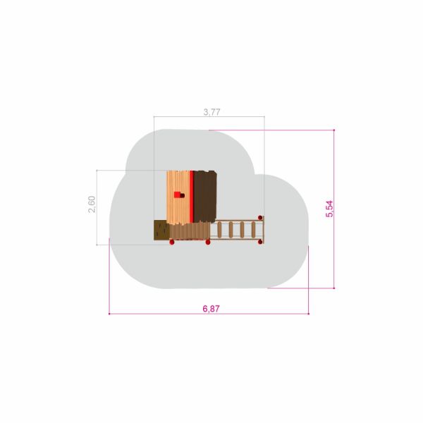 - Kompakte Maße: Durch die minimal erforderliche Fläche von 554 x 687 cm passt das Spielhaus in viele Umgebungen, ohne dabei zu viel Platz einzunehmen.