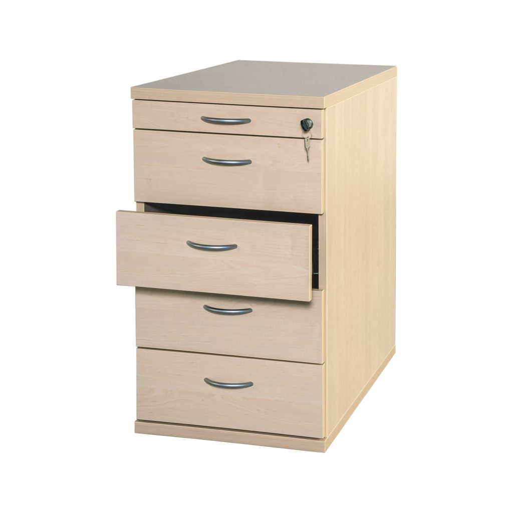 - Zentralverriegelung für alle Schübe: Ein Schlüssel für maximale Sicherheit. Über das Schloss am oberen Utensilienschub verriegeln Sie mit nur einer Drehung alle fünf Schubladen gleichzeitig. So sind vertrauliche Unterlagen, Prüfungsunterlagen oder persönliche Wertsachen zuverlässig vor unbefugtem Zugriff geschützt.
