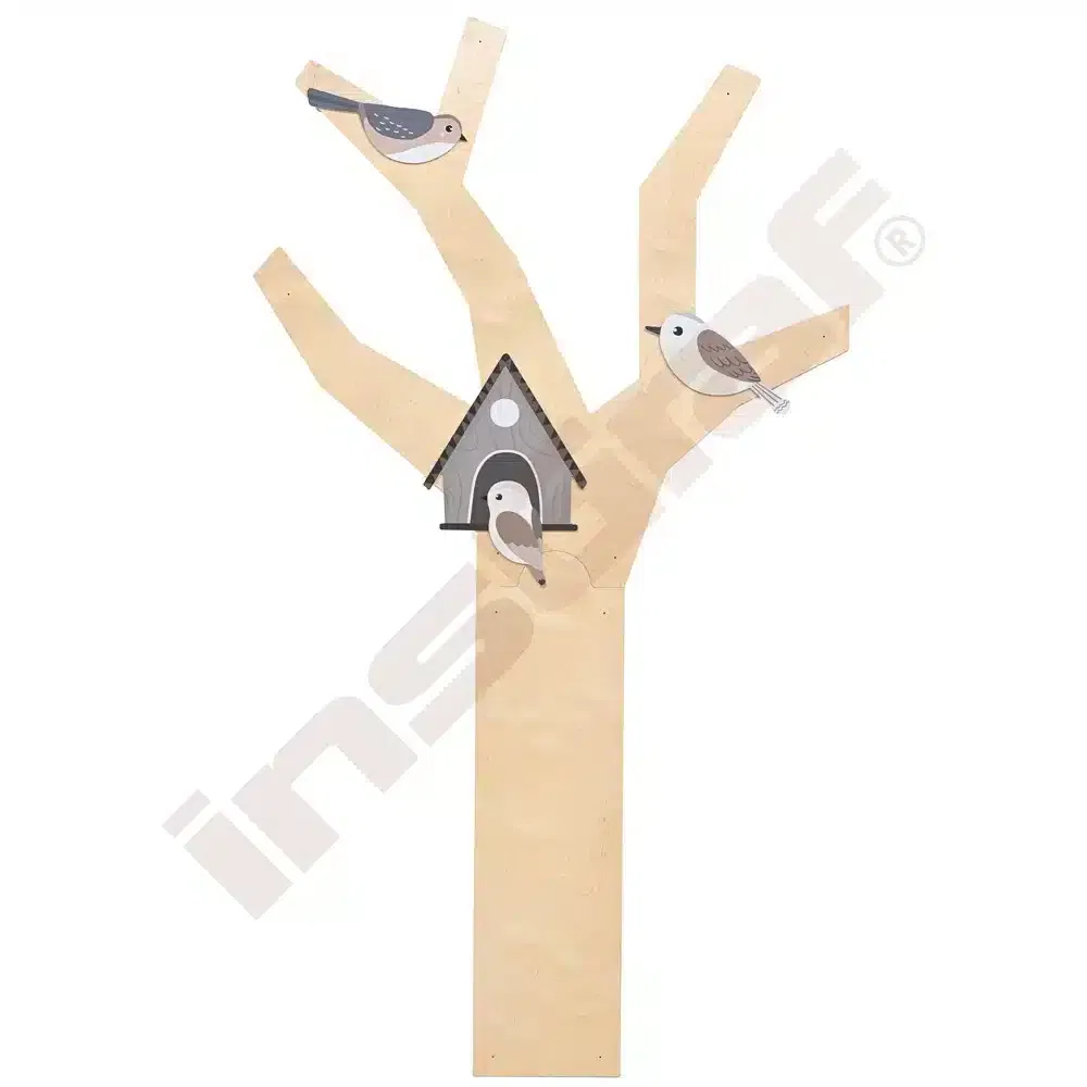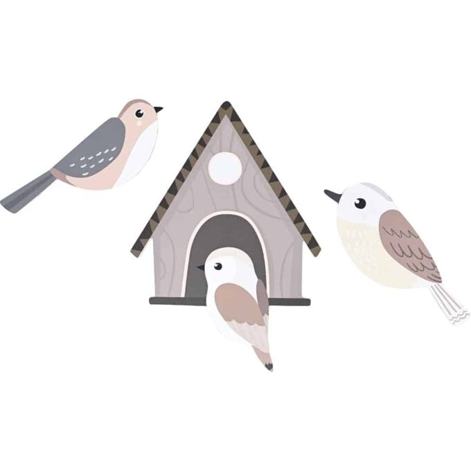 Bereichern Sie Ihre Räumlichkeiten mit dem Applikationen-Set – Vogelhaus mit Vögeln, braun-beige, das natürliche Ästhetik und sensorische Stimulation vereint. Ein warmer Hingucker für jede Kindereinrichtung!