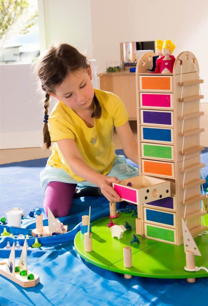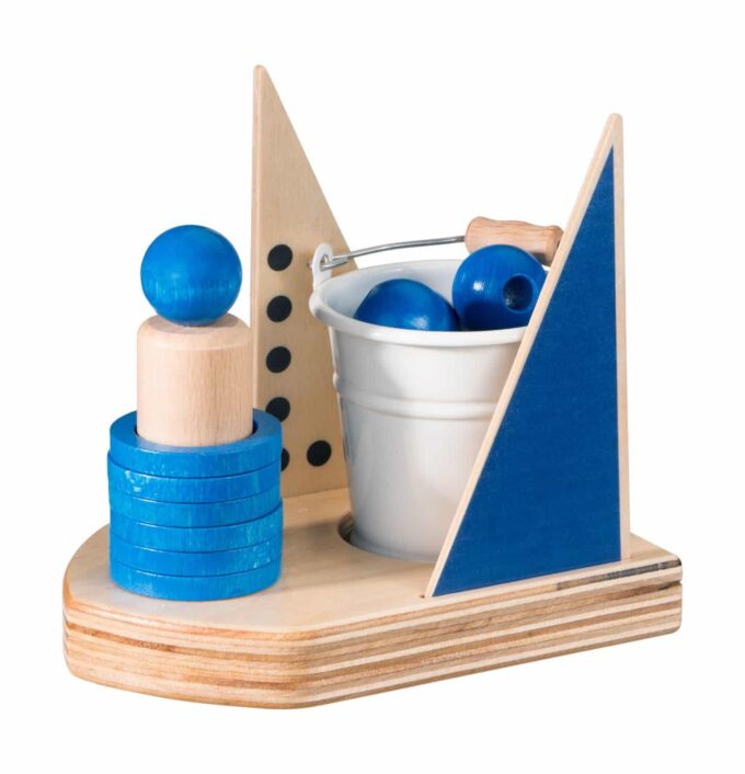 Das Set enthält eine Vielzahl von Elementen: eine Königsinsel, 10 Poller, ein König und eine Königin, 5 Inseln mit Bohrungen, Boote, Eimer, Katamarane, Perlen und vieles mehr – insgesamt über 100 Teile! Jedes Element ist aus hochwertigem Birke Multiplex und Buche gefertigt und mit umweltfreundlicher Beize und Lack bearbeitet, um sicherzustellen, dass Ihre Kinder mit nachhaltigen Materialien spielen.