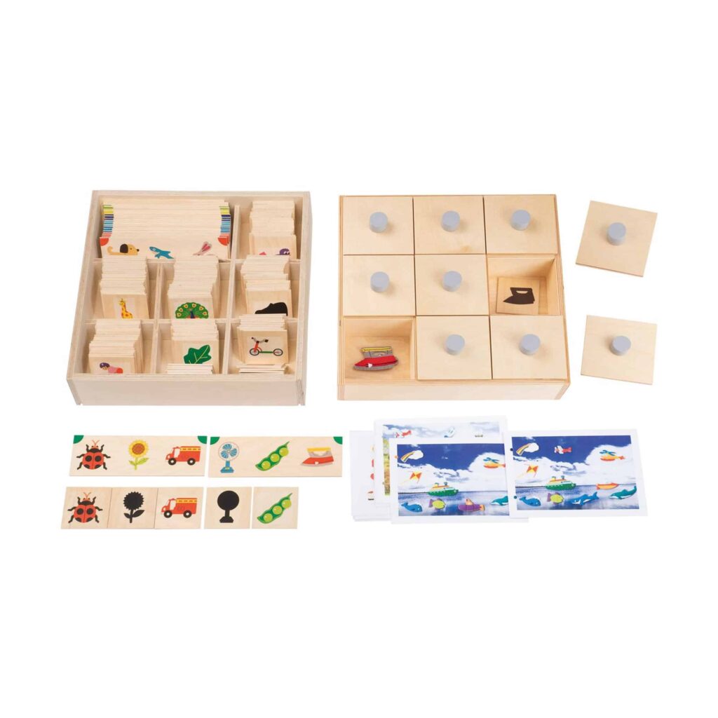 Mit dem Aufbau-Set 2 erhalten Kinder die Möglichkeit, sich auf verschiedene Aufgaben zu fokussieren und ihre Fähigkeit zu trainieren, die ungeteilte Aufmerksamkeit auf eine Sache auszurichten. Das Set umfasst 147 Schattenbildkarten (7 x 7 cm), die auf der Vorderseite ein Bild und auf der Rückseite das passende Schattenbild zeigen. Diese Karten regen zur aktiven Auseinandersetzung an und fördern die visuelle Wahrnehmung.