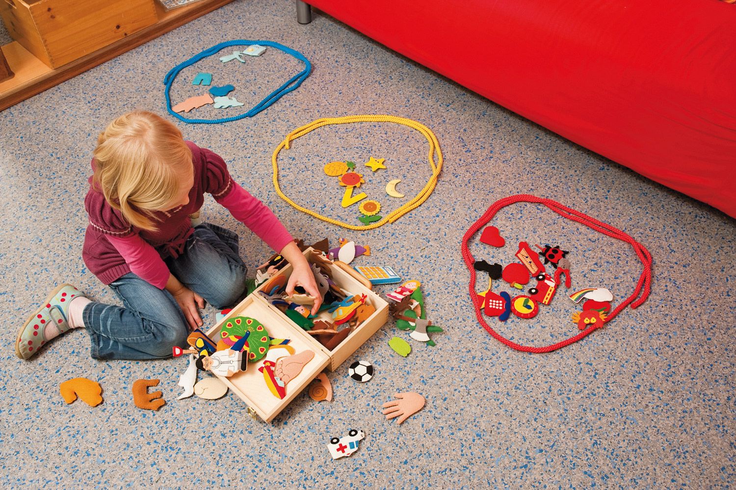 Die bunten und kindgerechten Stoffteile fördern nicht nur die auditive Wahrnehmung und die phonologische Bewusstheit, sondern ermöglichen es den Kindern auch, durch das Greifen und Fühlen die Sprache hautnah zu begreifen. Dabei wird die Sprachkompetenz der Kinder spielerisch erweitert, gefördert und gefestigt.