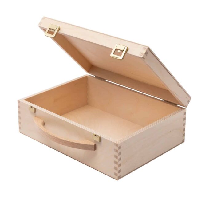 Hergestellt aus robustem Birke Multiplex, zeichnet sich der Holzkoffer durch seine Langlebigkeit und Stabilität aus. Die nachhaltigen Materialien sorgen dafür, dass der Koffer nicht nur gut aussieht, sondern auch umweltfreundlich ist. Die sorgfältige Oberflächenbearbeitung garantiert eine angenehme Haptik und Sicherheit beim Umgang.