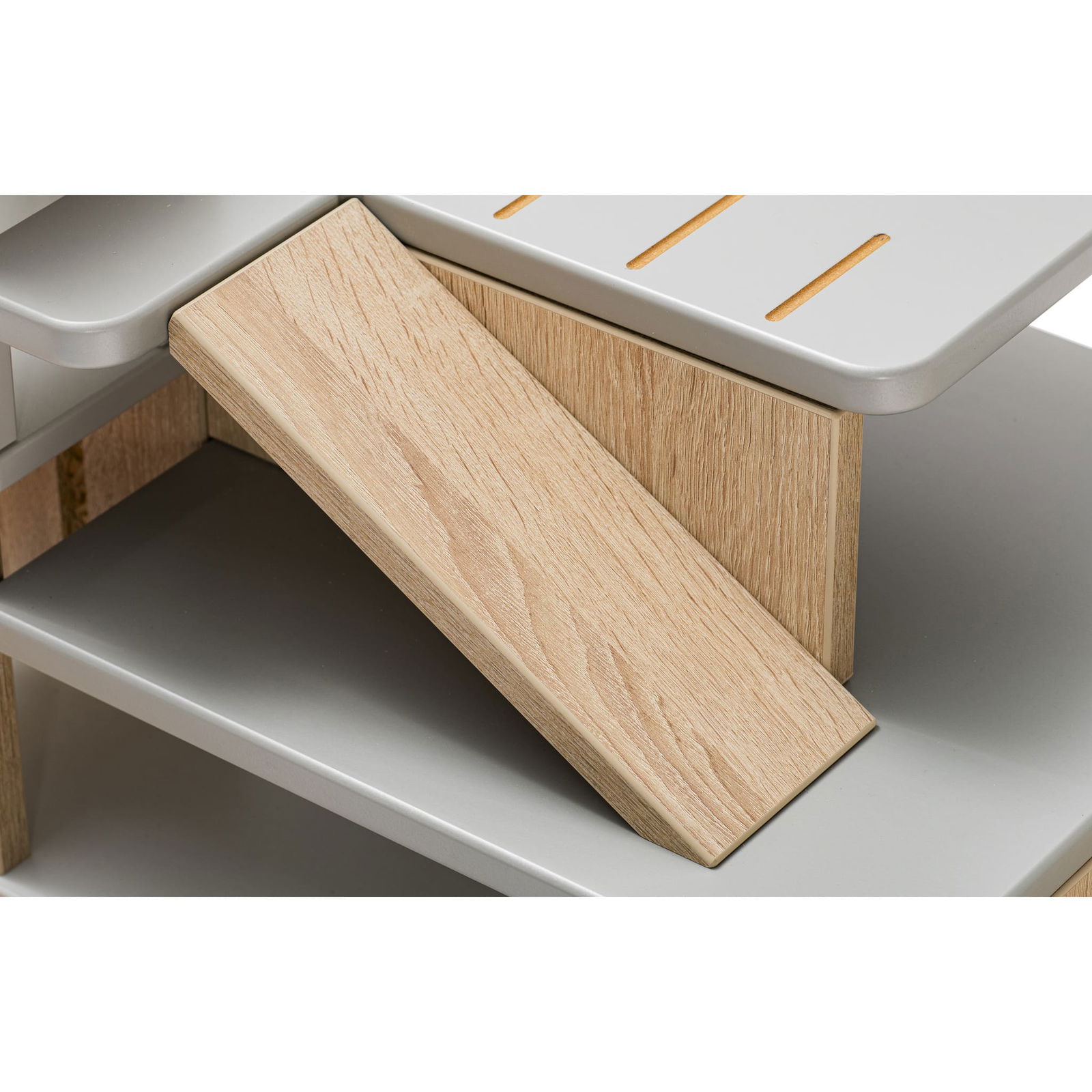 - Ordnungsgefühl: Der Aufsatz sorgt für einen aufgeräumten Spielbereich, da der Spielplatz direkt auf dem Regal integriert wird.