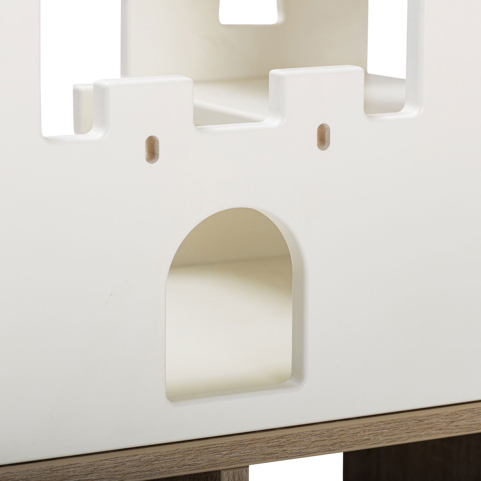 - Einfache Reinigung: Die weißen Oberflächen sind abwischbar, sodass Spuren von klebrigen Kinderhänden schnell beseitigt sind. Die solide Verarbeitung garantiert, dass die Burg vielen Generationen von kleinen Rittern standhält.