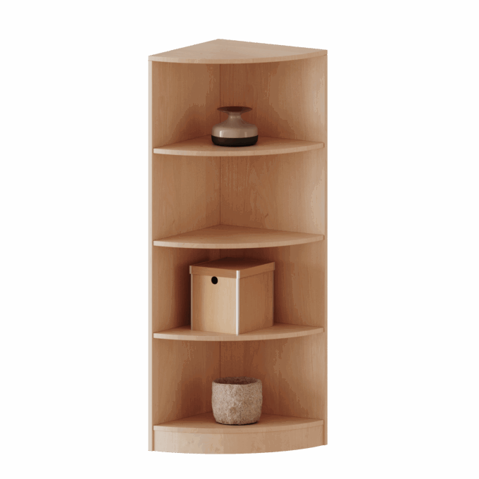 Die evo180 Außeneckregale in Viertelkreisform in verschiedenen Höhen und Tiefen sind ein ganz besonderer Bestandteil unseres evo180 Schrankwandprogrammes. Sie helfen dabei, Ihnen eine Schrankwand im wahrsten Sinne des Wortes „um die Ecke zu bringen“. Die Außenecken führen die Schrankwand um nach innen in den Raum hineinragende Ecken fort. Die Rückwand ist als Sichtrückwand ausgeführt.