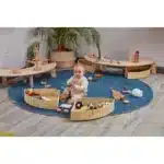 Hier kommt die ultimative Abenteuerzone für kleine Entdecker, Krabbler und angehende Läufer! Unser „Baby Cruise Circle“ ist der perfekte Ort für die aufregende Phase der ersten eigenen Bewegungen. Dieses clever gestaltete, zweiteilige Set aus Holz schafft einen sicheren und anregenden Raum, der Ihr Kind ermutigt, die Welt auf eigene Faust zu entdecken. Ob als schützender Kreis, der zum Hochziehen und Entlanghangeln einlädt, als fantasievolle Rennstrecke für kleine Fahrzeuge oder als gemütlicher Sitzkreis – der „Baby Cruise Circle“ ist ein wahres Multitalent. Er bietet eine sichere Umgebung, in der Babys und Kleinkinder ihr Gleichgewicht trainieren, ihre Muskeln stärken und das Vertrauen für die ersten, wackeligen Schritte gewinnen können.
