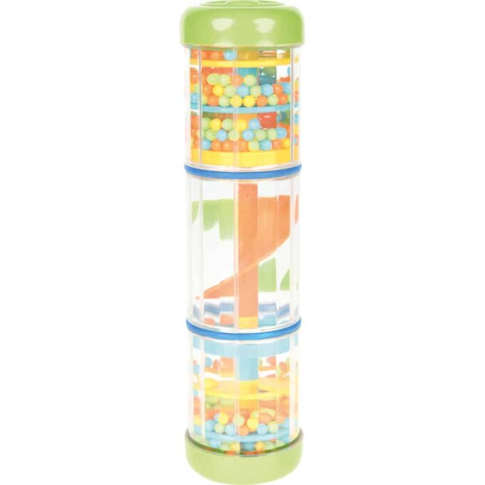 Unser Baby Regenmacher besteht aus robustem Kunststoff und wird in verschiedenen, leuchtenden Farben geliefert – der Verkauf erfolgt nach dem Zufallsprinzip, sodass jede Bestellung eine spannende Überraschung bereithält. Im Inneren des Regenmachers befinden sich kleine, bunte Kügelchen. Einfach umdrehen und dem beruhigenden Klang lauschen, der feinen Regen imitiert und die Sinne Ihres Babys begeistert.