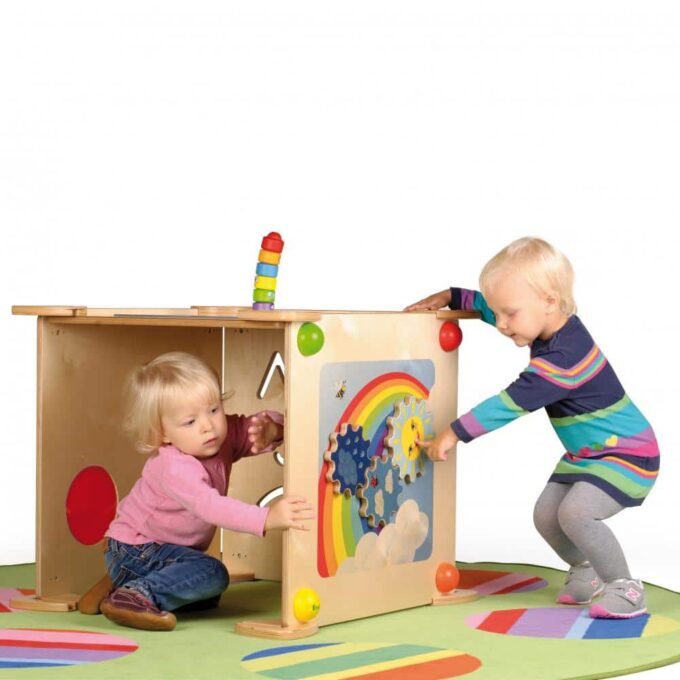 - Robuste Materialien: Gefertigt aus hochwertigem Birkensperrholz und Buche hält das Wandelement auch dem engagierten Spiel in einer Kindergruppe stand.
