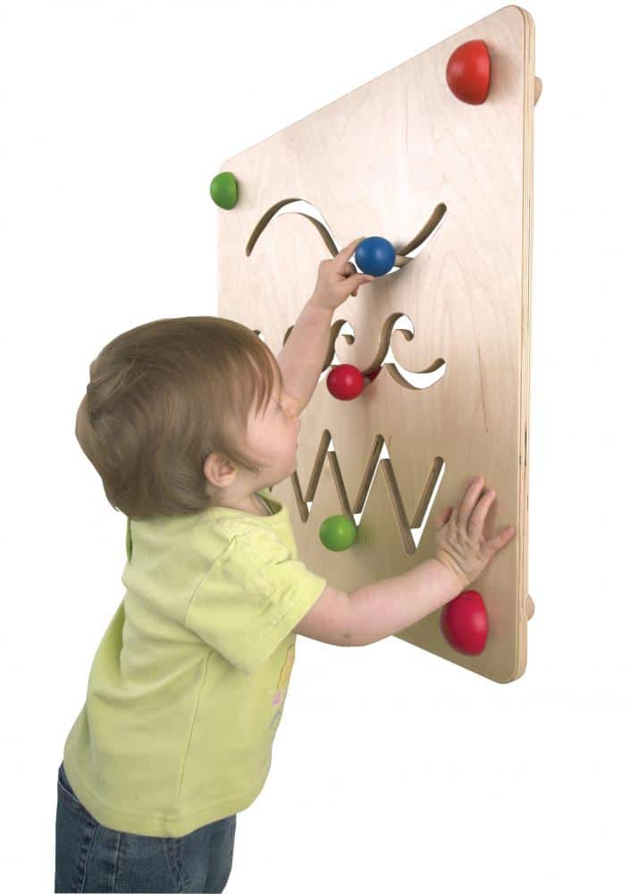 Material: 15mm Birkensperrholz; Buche, farbig lackiert. 3 verschiedene Spuren zum spielerischen Folgen des Pfades. Eingetragenes Design.