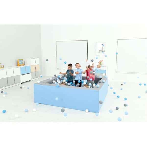 Bällebad quadratisch 2m – grau-hellblau – Höhe: 60 cm für Kindergärten