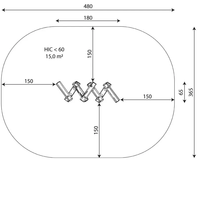 - Sicherheitsbereich: 15,0 m²