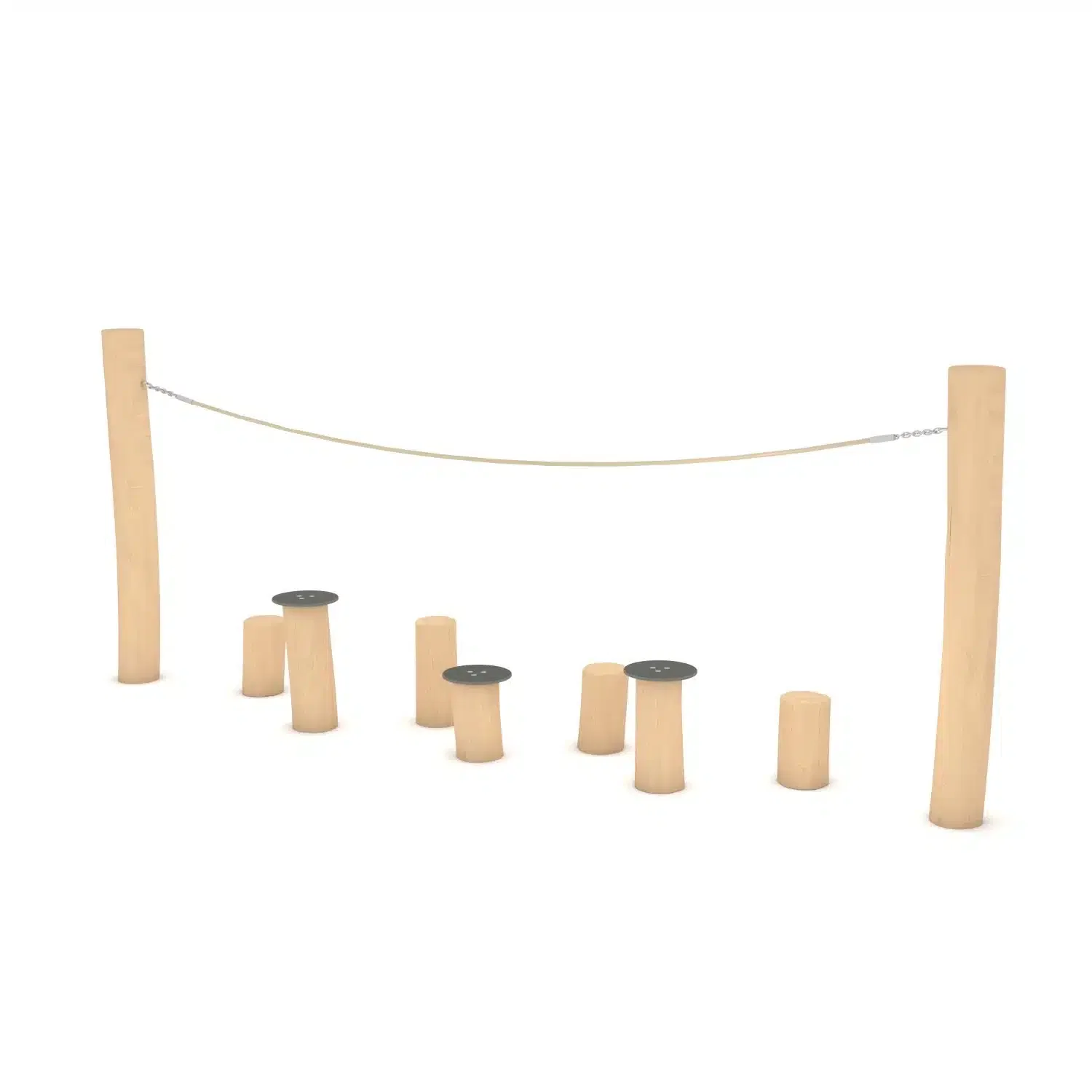 Bereiten Sie den Weg für ein Abenteuer, das Konzentration, Koordination und Mut erfordert! Der Balancierparcours ROBINIA RB1272 ist eine spannende Herausforderung, die Kinder dazu einlädt, Schritt für Schritt ihren Gleichgewichtssinn zu meistern. Diese einzigartige Konstruktion, bestehend aus versetzt angeordneten Trittflächen und einem unterstützenden Halte-Seil, schlängelt sich durch die Landschaft und fordert bis zu sieben Kinder gleichzeitig heraus. Verankert in massiven, charaktervollen Robinienholzstämmen, verbindet dieser Parcours die rohe Schönheit der Natur mit durchdachter Funktionalität. Entwickelt für den anspruchsvollen Dauereinsatz auf öffentlichen Spielplätzen, in Schulhöfen oder Parkanlagen, ist dieses nach EN 1176 zertifizierte Gerät eine langlebige, sichere und pädagogisch wertvolle Bereicherung, die Kinder ab drei Jahren begeistert.